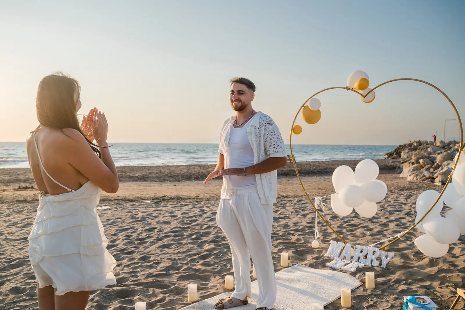 Mit jahrelanger Erfahrung in der Hochzeitsfotografie auf Rhodos wissen wir genau, wie wichtig jedes Detail ist. Deshalb arbeiten wir eng mit einem handverlesenen Netzwerk professioneller Wedding Planer zusammen, die atemberaubende Dekorationen und romantische Setups für euren besonderen Moment kreieren. Ob am Strand bei Sonnenuntergang, in den historischen Gassen von Lindos oder auf einer einsamen Klippe mit Blick auf das Ägäische Meer – wir setzen eure Verlobung auf Rhodos perfekt in Szene.